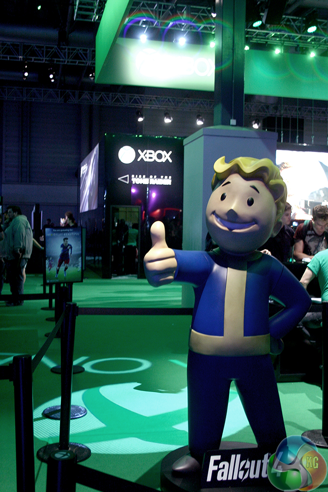 Microsoft went with static statues for its booths, running with the classic Fallout figure at one end and a few friends at the other.