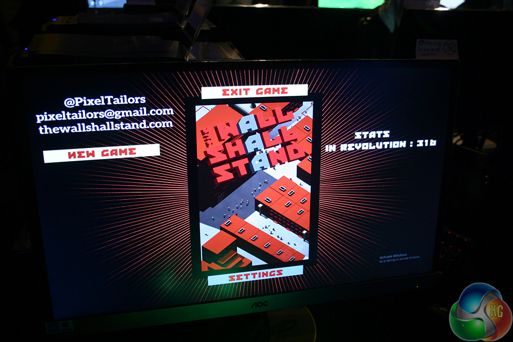 The Wall Shall Stand was an interesting game we tried out for a good half-hour. You play a young freedom fighter in a dystopian society, spreading your message of freedom and recruiting followers by putting up posters and shouting your message to the world. Gather enough and you can take down statues to the regime, but watch out for the club wielding police.