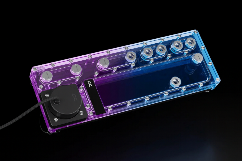 The plate is manufactured from clear acrylic glass to provide an unobstructed view of the coolant, with digital aRGB lighting built in for system illumination. You will also find chrome‑plated brass G1/4 fittings are embedded directly into the acrylic body to improve durability and reduce the risk of leaks.