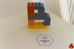 After you've picked the parts, you're guided through the various stages of building. Voila! You've built the letter B in Duplo. Presumably, though, in the real world a worker would be constructing some electronics or an aircraft.