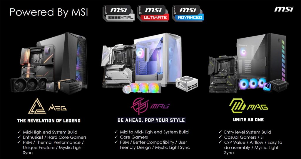 ‘Project Zero’ was the term that drew most interest, covering a variety of products that will allow system builders to create PCs which, at first glance, no longer appear to have any cables. For most products, MSI operates a good-better-best model, denoted by similar TLAs (three letter acronyms), as follows:-