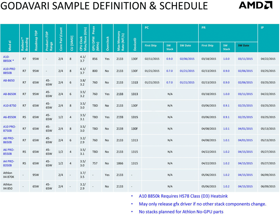 AMD’s “Godavari” products for desktops will formally belong to the A-series 8000-sequence family, but will be architecturally identical to existing “Kaveri” chips. The forthcoming APUs will feature up to four “Steamroller” cores, Radeon R7 graphics with GCN 1.1 architecture, a dual-channel DDR3 memory controller as well as heterogeneous system architecture (HSA) capabilities. The only difference between “Kaveri” and “Godavari” chips are slightly higher CPU and GPU clock-rates of the latter. However, the dissimilarity will be so insignificant that performance advantage will be hardly noticeable in real-world applications.