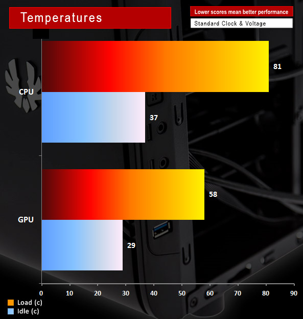 We tested the thermal performance of the BitFenix Comrade chassis under load using Prime95 and 3DMark – recording the maximum temperatures reached.