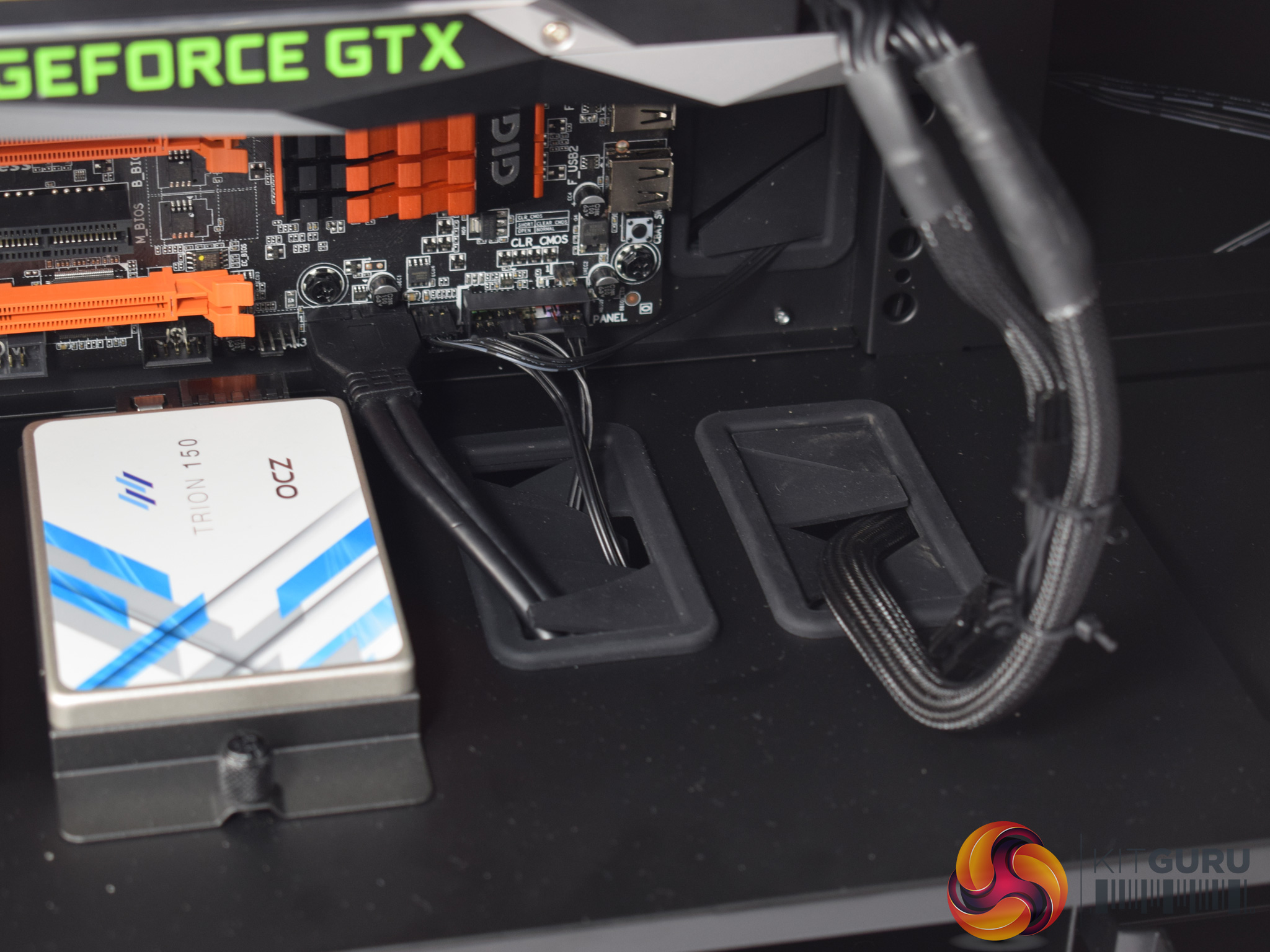 Moving on, though, the PSU shroud has plenty of cut-outs which help keep your front-panel connectors tidy. I also used one of these cut-outs to route the PCIe power cable for the GPU.