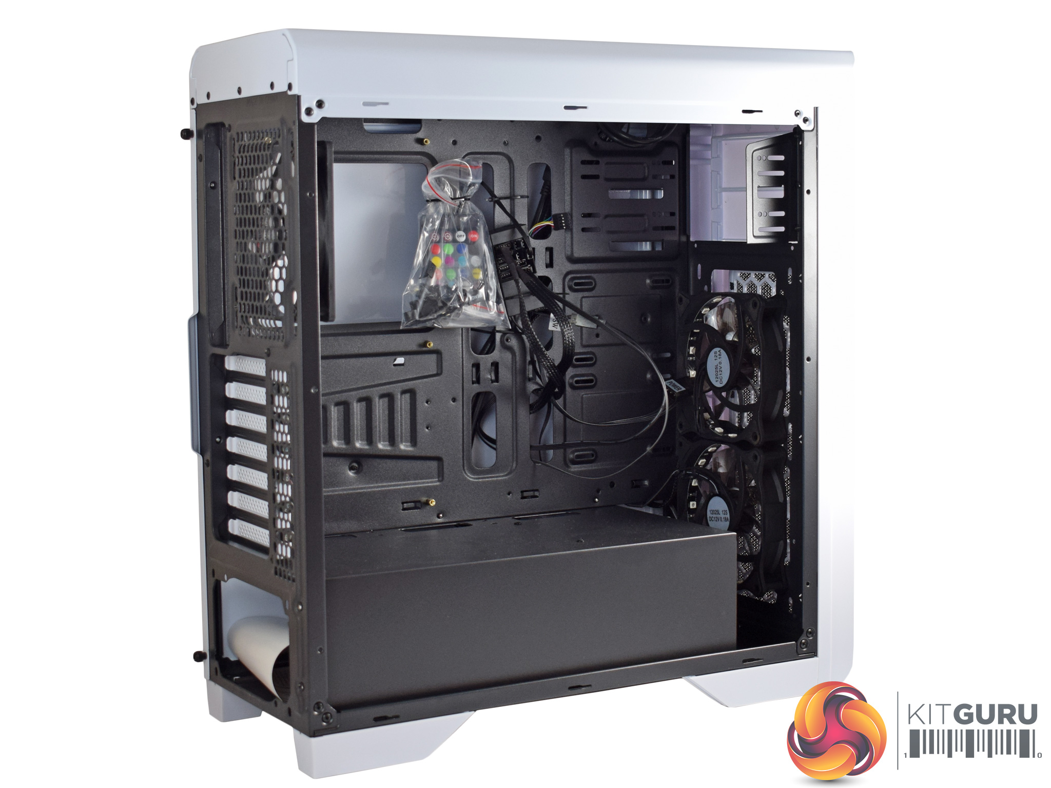 There are two 120mm, RGB fans at the front of the case as well – these are controlled by a small remote control. On the next page we take a look at some of the colour options available.