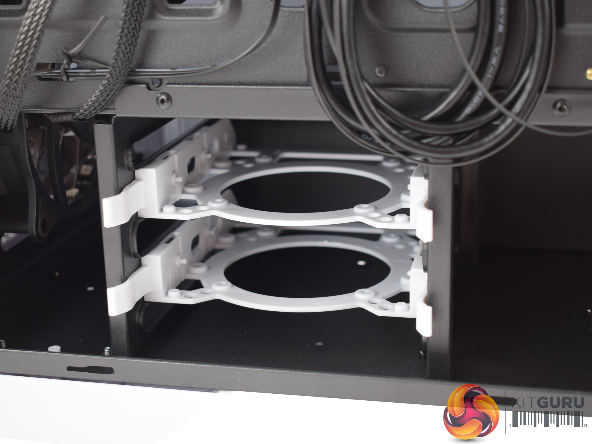 Under the shroud we also find a pair of 3.5″ drive bays. The drives mount to removable caddies – installation is also tool-less, another great feature of the Falcon.