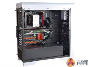 To cut to the chase, building in the Falcon is an absolute breeze. I was able to route all the cables through several cut-outs – which is something you can never take for granted at this price-point. This made the finished system look very clean and tidy, with no cables trailing across the motherboard or anything like that.