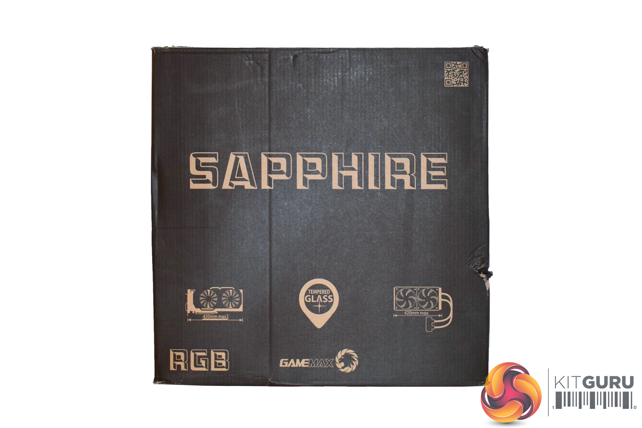 The Game Max Sapphire RGB case ships in a comparatively plain black box, with just a mention of some key features on the front.