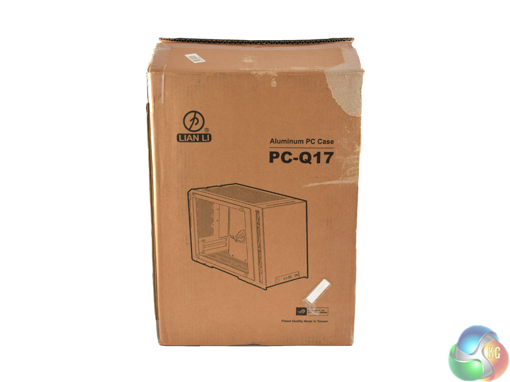 Being a small chassis, and being constructed entirely from aluminium, the Lian Li PC-Q17 ships in a compact and light brown box.