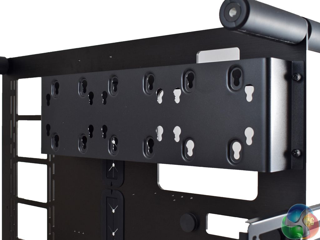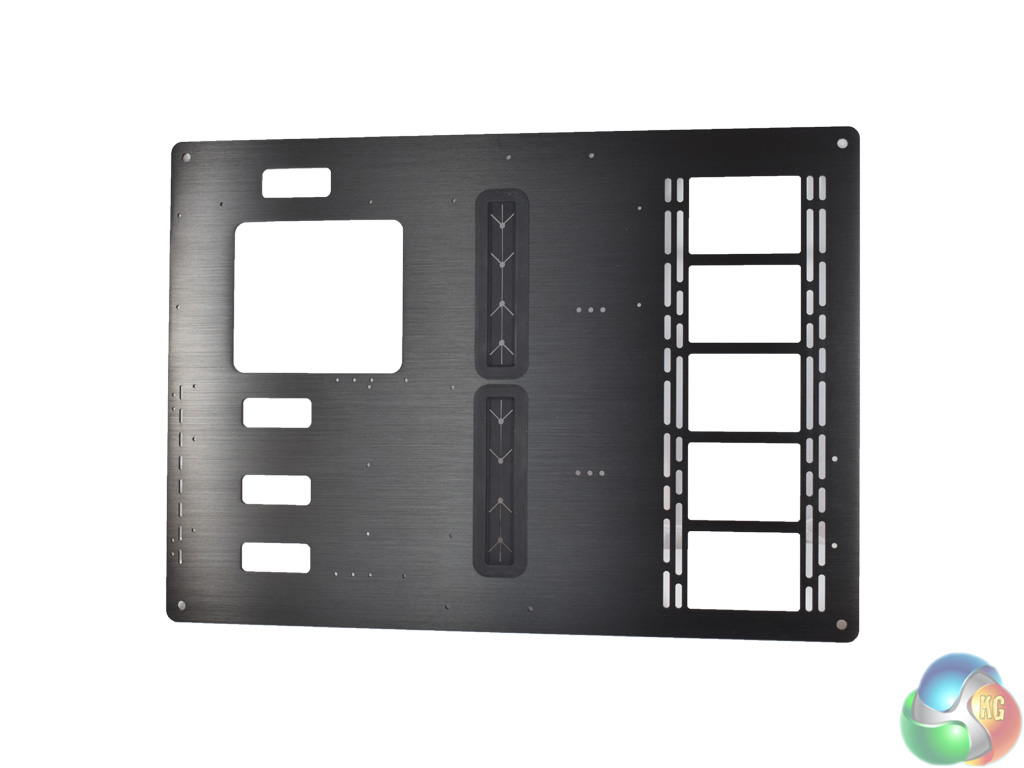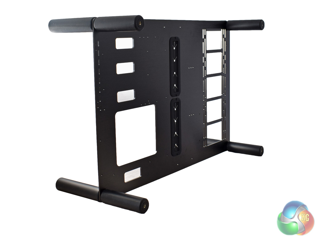The first thing to come out of the box is the aluminium frame. It is is a large slab of brushed metal, with plenty of space to mount radiators (up to 360mm), motherboards up to ATX, as well as multiple graphics cards.