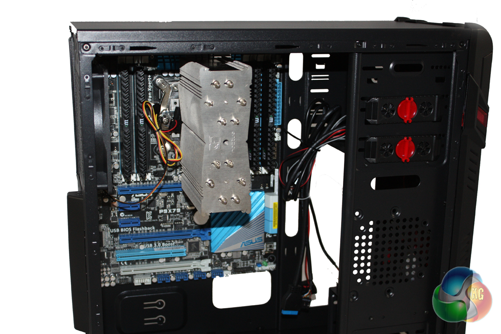 Unfortunately, there isn't a great deal of room behind the motherboard tray for cable routing but this cannot really be expected at this price point. There are a few holes cut into the motherboard tray for the 24-pin power connector and to power the graphics card, as well as a small amount of room behind for these cables.