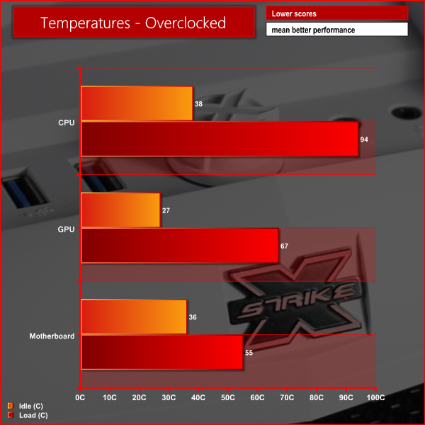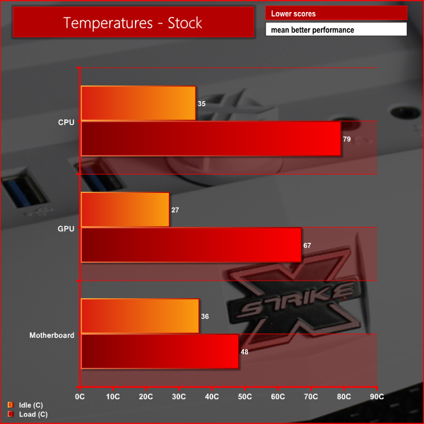 To test the thermal performance of the Aerocool Strike-X Cube we loaded our test system for 15 minutes using Prime95 and Furmark and recorded the maximum temperatures reached using CPUID Hardware Monitor. We then restarted the system and left it for 15 minutes before recording idle temperatures.