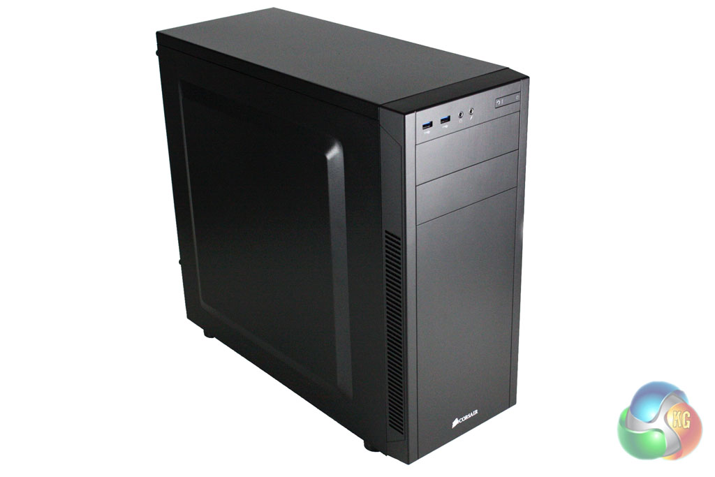 Moving round to the sides of the case, there are no vents to speak of. Corsair have shaped the side panels of the case to allow for extra room inside for cable routing behind the right hand side panel and extra room for large CPU coolers behind the left.