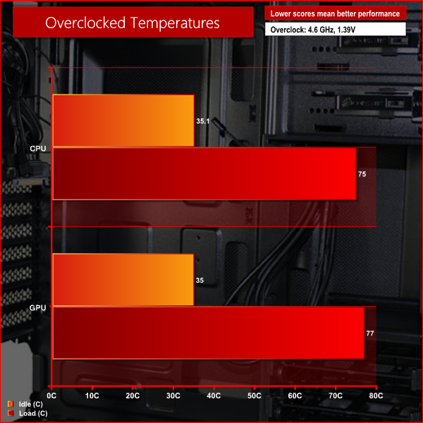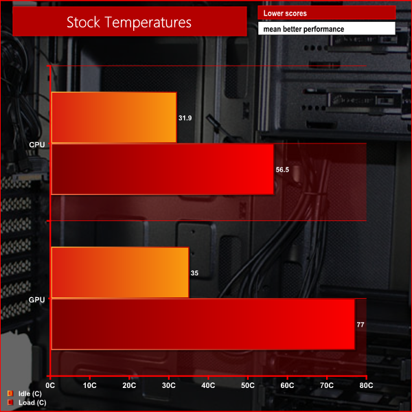 To test the thermal performance of the Corsair Carbide 100R we loaded our test system for 15 minutes using Prime95 and Furmark and recorded the maximum temperatures reached using CPUID Hardware Monitor with the case fans set to maximum. We then restarted the system and left it for 15 minutes before recording idle temperatures.