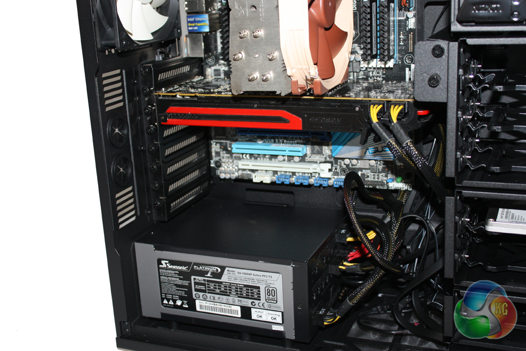 There is plenty of room in the case for long power supplies, meaning we had no trouble securing our Seasonic Platinum 1000W into position.