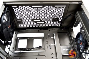 A full cover PSU shroud has been implemented in the Pure Base 500, although it leaves the power supply quite exposed with the triangular grid design grille allowing the PSU to be seen. We would prefer this to be completely closed for a cleaner look.