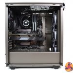 To test radiator clearance at the front of the case, we decided to fit a Thermaltake Floe DX 360mm AIO. Surprisingly this was very straight forward and once completed, there was still ample space to install the GPU. getting to the lower fan screws was tricky but not impossible.