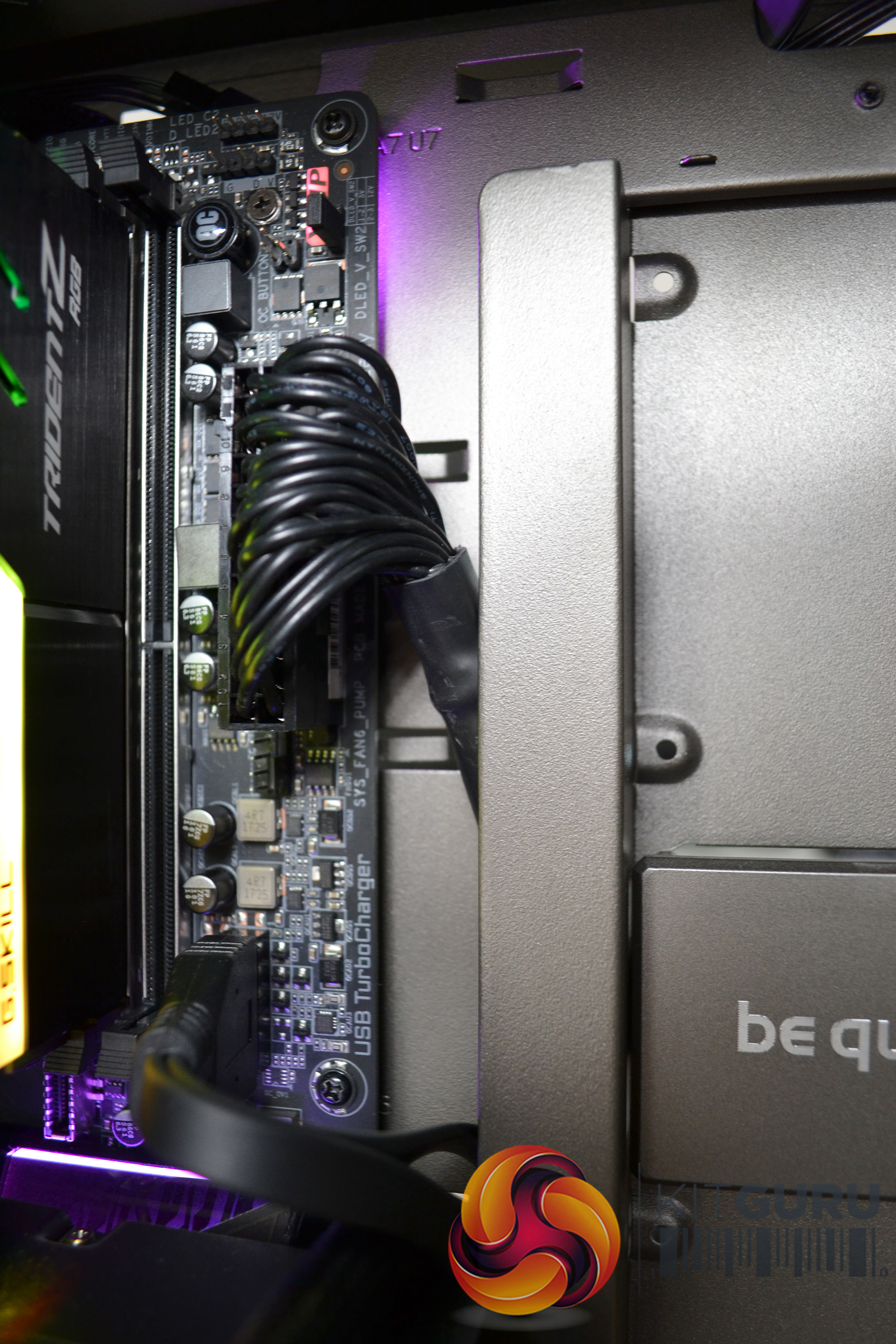 Secondly, our main bugbear with the cable management is the cut out on the removable SSD panel. When installing the 24-pin power connector, we could not manipulate the cable through the cut out as we desired. So, either the cable was stuck out of the case side too far or it had to be angled downwards for clearance.