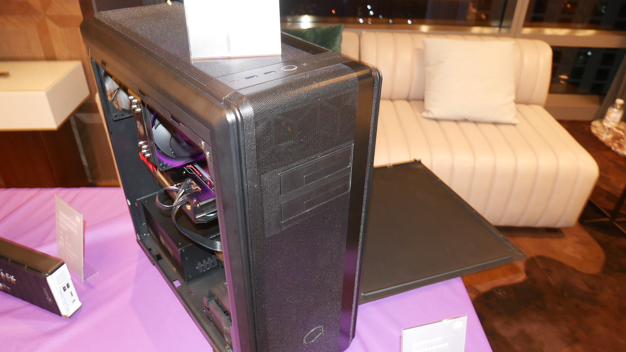 Cooler Master is working with Intel to bring an NC100 chassis and a custom SFX power supply for Intel’s Element system. Cooler Master plans to manufacture its own board for the system in the future to have control over power connector locations to improve cooling potential. More mainstream style new cases from Cooler Master include the updated TD500 with a tempered glass side panel upgrade that is expected to launch around February, priced between $99-$109 and available in both black and white versions.