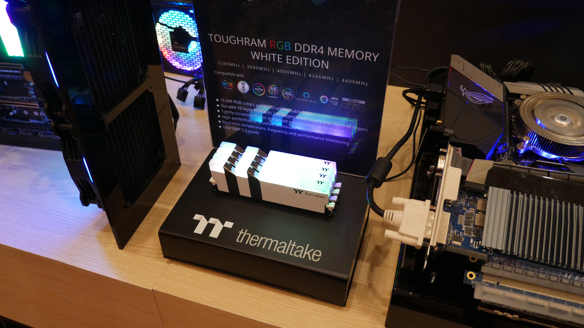 Leo got to see plenty of new ToughRAM modules, some with RGB and some without, as well as WaterRam and a brand new AIO CPU cooler, the Floe RC 360 ARGB CPU and RAM cooler which is a regular looking CPU AIO with an additional RGB water block for the RAM. The AIO includes the RAM too so we expect it to be quite an expensive AIO solution.