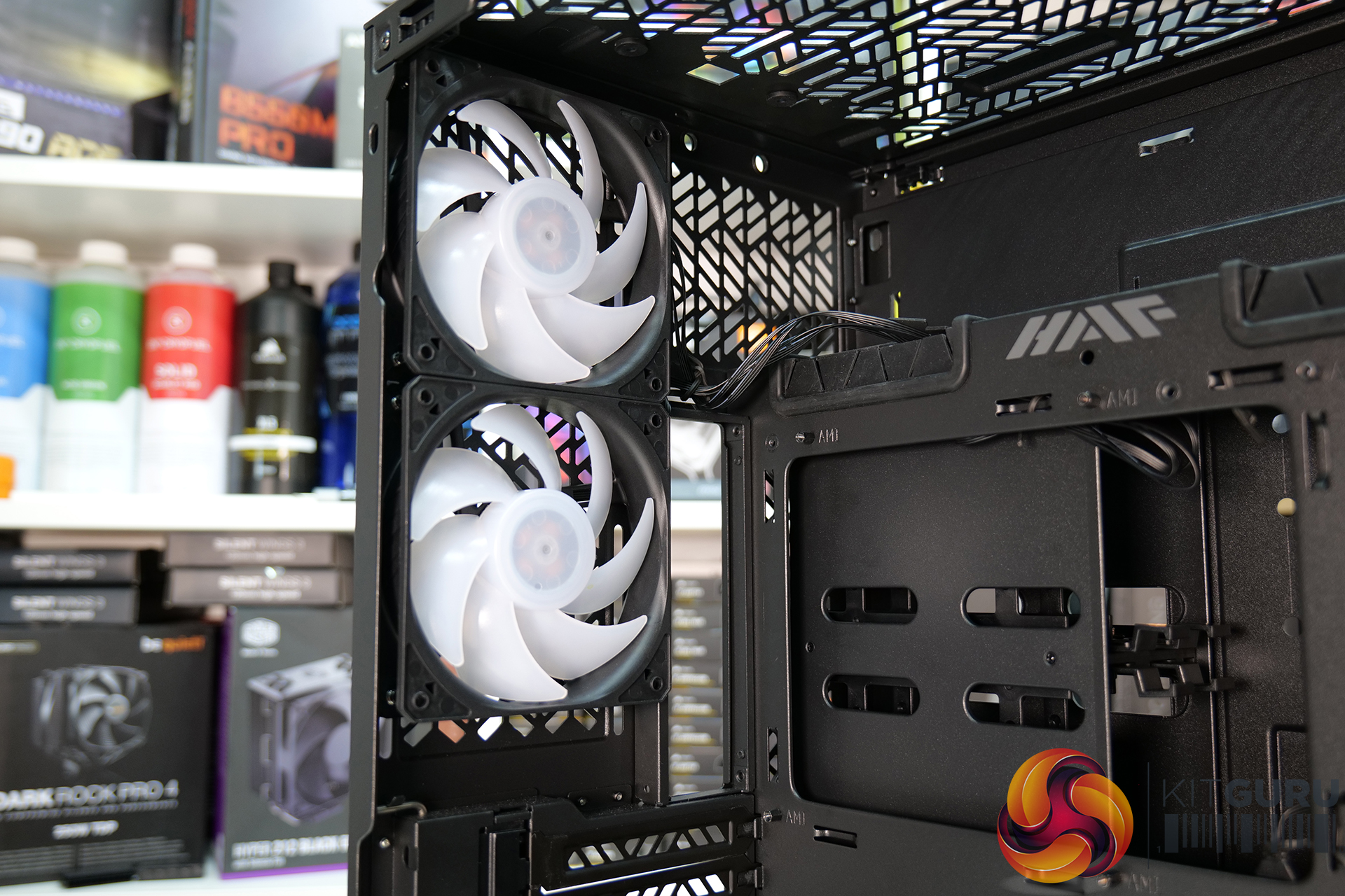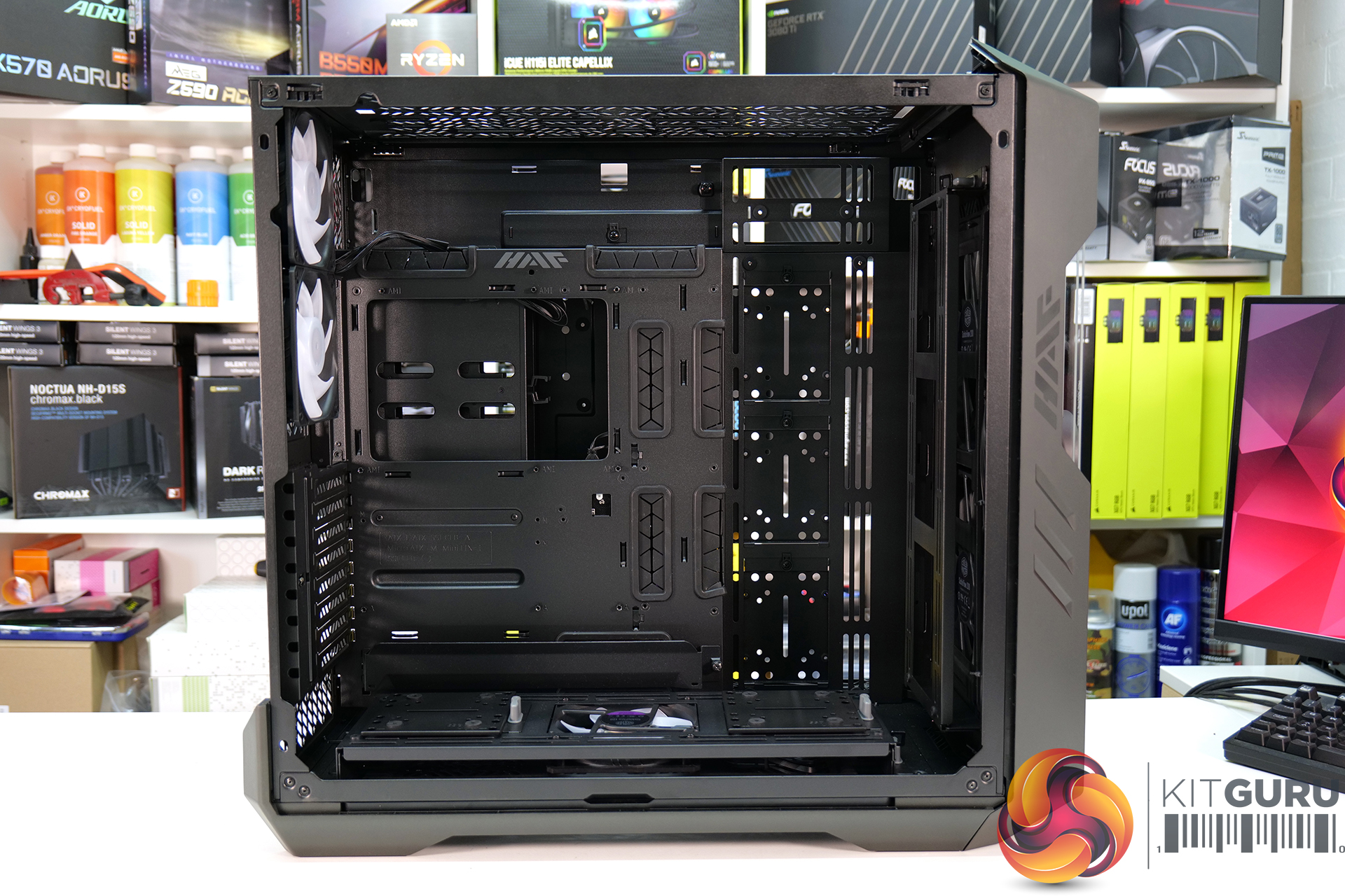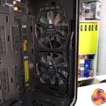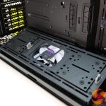 So space isn’t an issue in the HAF 700 EVO and to be honest the whole build went very smoothly. The tool-less features all worked well however, there was some interference with our 140mm fans when three were installed in the removable brackets together. A rivet head gets in the way a little which means you must force the fan bracket lid closed which marks up the fan housing.