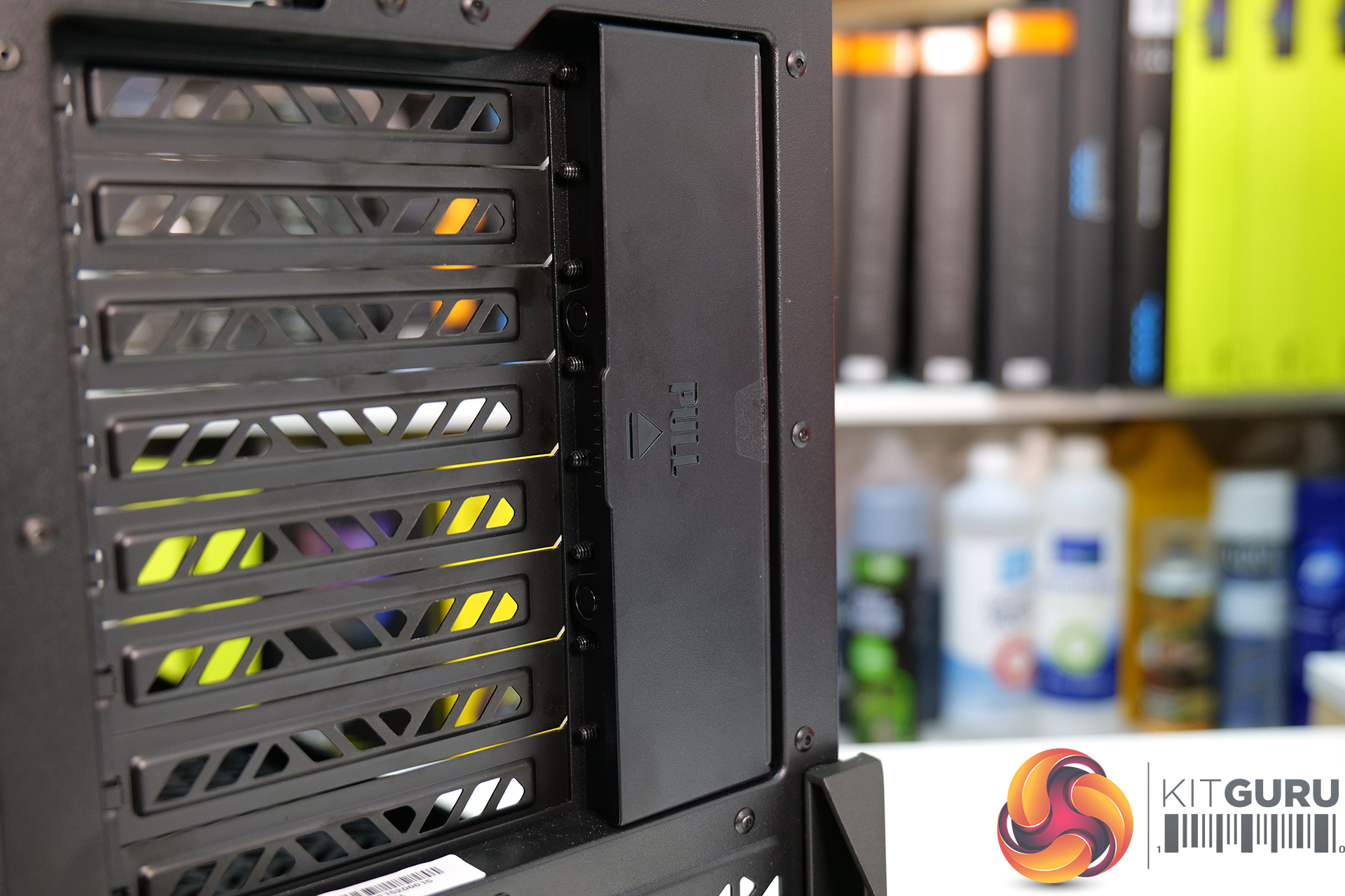 The top panel sides backwards then lift off to remove, this top panel also locks the side panels in position. Once the top is removed then the left- and right-hand sides pull out and lift away completely tool-free. This tool-free approach extends to the interior of the case with two removable fan/radiator/storage mounting brackets that use a quick-release mechanism allowing the user to completely remove them tool-free.