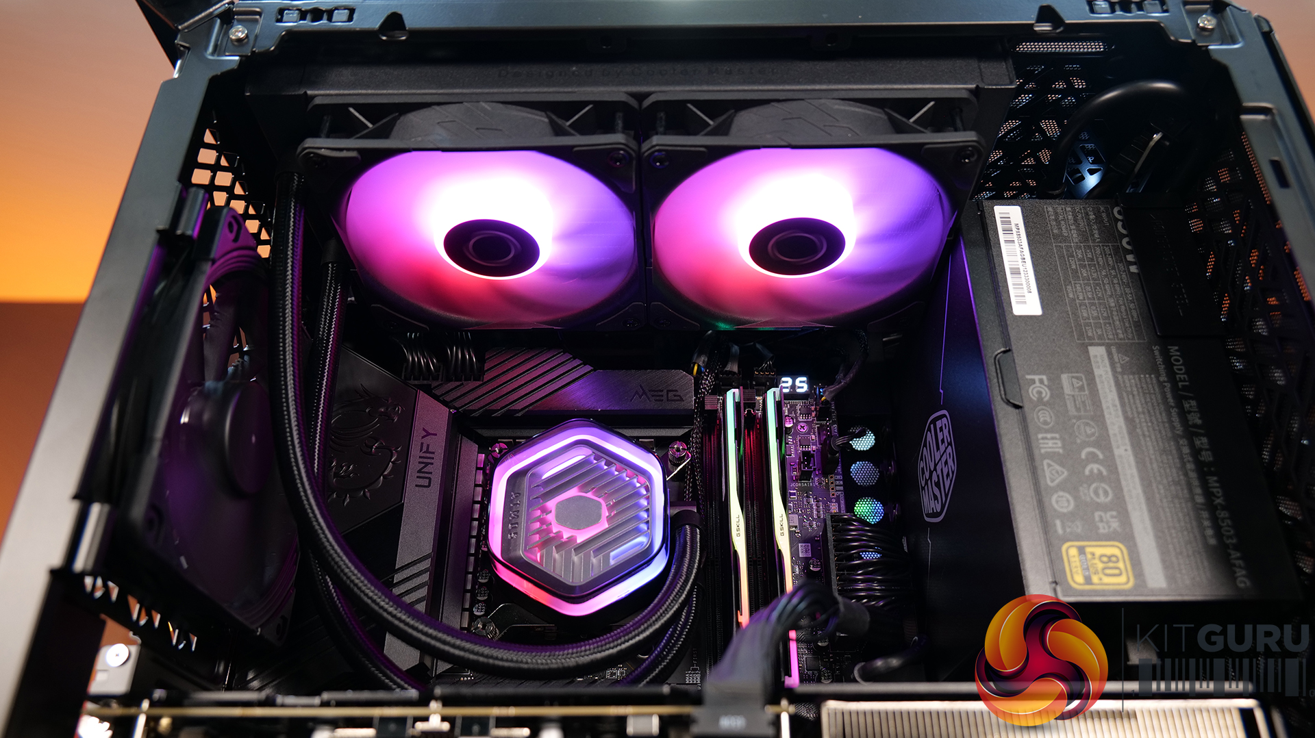 Building the case is easy, and once built up the system inside looks very neat. Due to the compact size of the QUBE 500, building a regular system with an AIO or air cooler for the CPU will fill the case nicely, theres no gaping spaces in the hardware so the system doesn’t look lost inside as it can do in some larger cases. Hardware support is generous with big graphics cards, tall air coolers and multiple radiators all supported. However, I would like to see 360mm radiators supported but hopefully Cooler Master can refine the design in future to accommodate this.