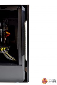 The left-hand side of the case is split into two separate sections. The top section is the removable steel (or glass depending on configuration) side panel. Beneath this, the bottom section is actually the PSU shroud which is permanently fixed in-place. We quite like this idea as it breaks up the side, giving it a little style and makes the PSU area a little less congested.
