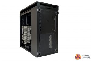 The overall build quality of the exterior is good – the steel may be on the thin side, but it does have a quality, sturdy feel to it, even when the side and front panels are removed. The black coating, which is applied evenly, is well matched between the steel and plastic parts.