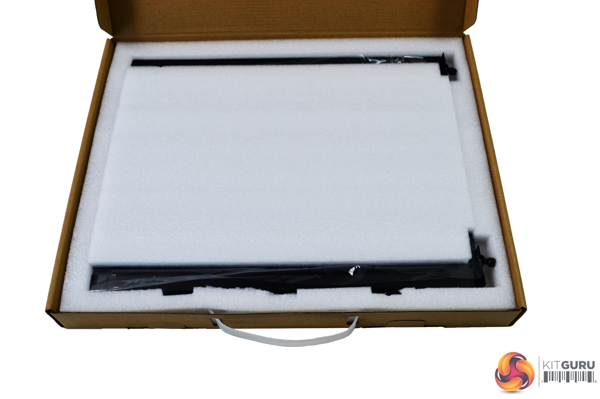 Cooler Master has kindly provided us with the alternative tempered glass side panel, which will give us more options during testing. This also arrives in a brown cardboard box with a plastic carry handle. The tempered glass panel is well protected, with thick foam covering and anti-scratch film applied to both sides.