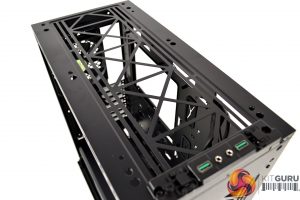 Since there are no 5.25-inch optical drive bays in the Macube 310P, the interior feels very spacious, especially when you realise that this is quite a compact mid-tower. At the front of the case is the VGA support bracket which is mounted in a slot for adjusting the height to accommodate the position of various graphics cards.