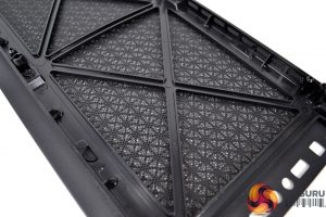 The front panel of the Macube 310P is held very tightly in position on the chassis frame and takes quite a tug to remove it. Once it has been peeled away front the chassis, behind the front panel we can see ample space for installing up to three 120mm fans or up to a 360mm radiator. Alternatively, there is room at the front for three 140mm fans or a 280mm radiator.