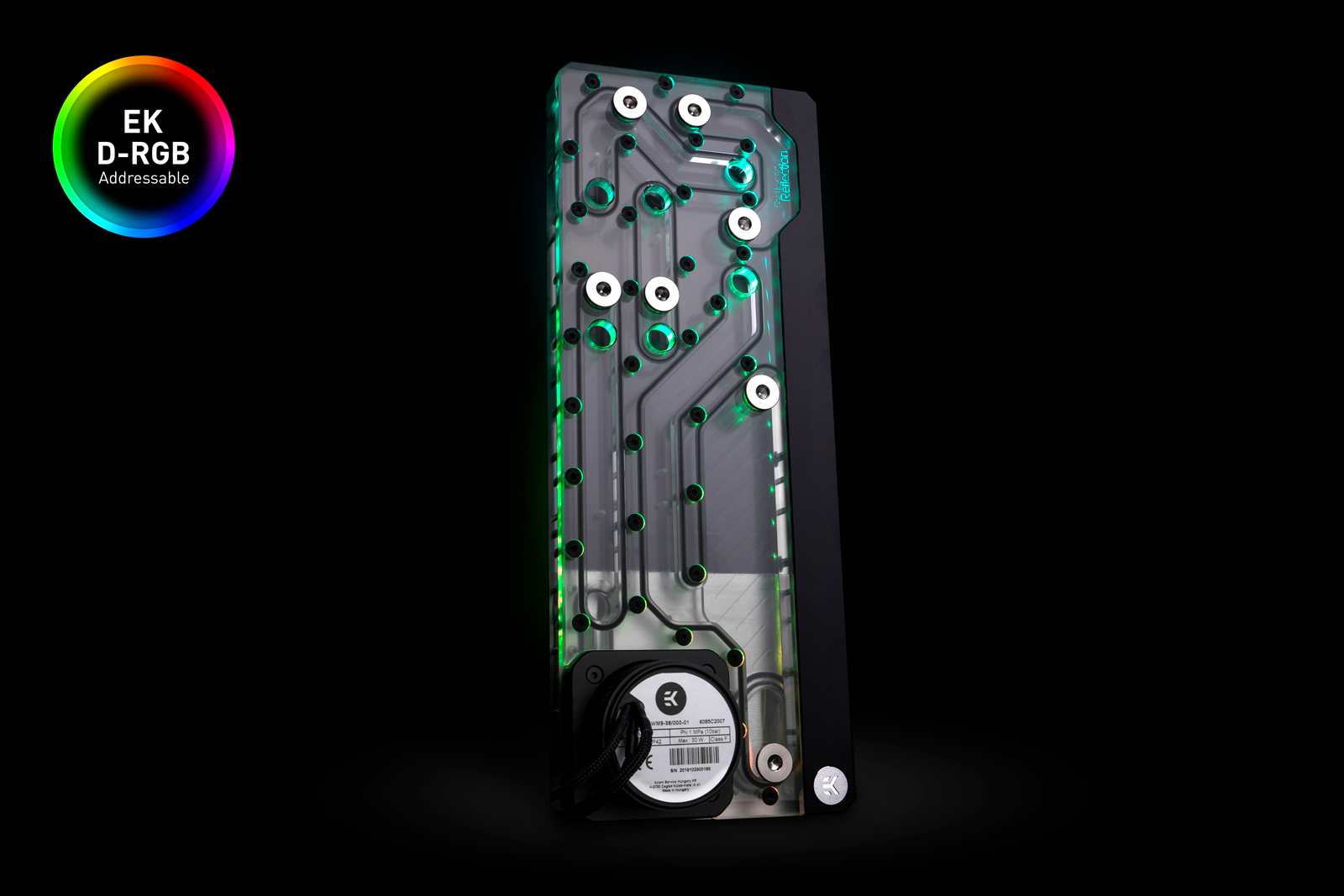 The EK-Quantum Reflection Fractal ATX D5 PWM D-RGB distribution plate provides an advanced custom water cooling solution for supported Fractal Design cases including the new Define 7 and 7 XL series, as well as the Define R6, Define S2, Vector RS and the Meshify S2.