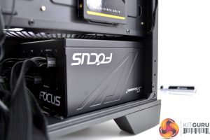 Compact mid-tower cases can sometimes throw up issues when installing the power supply, it can be quite tight when sliding the power supply in from the side. In the Forge 100R, there is just the correct amount of room to slide in the power supply and it seems like there is enough space behind our Seasonic Focus power supply to hide the unused cables.