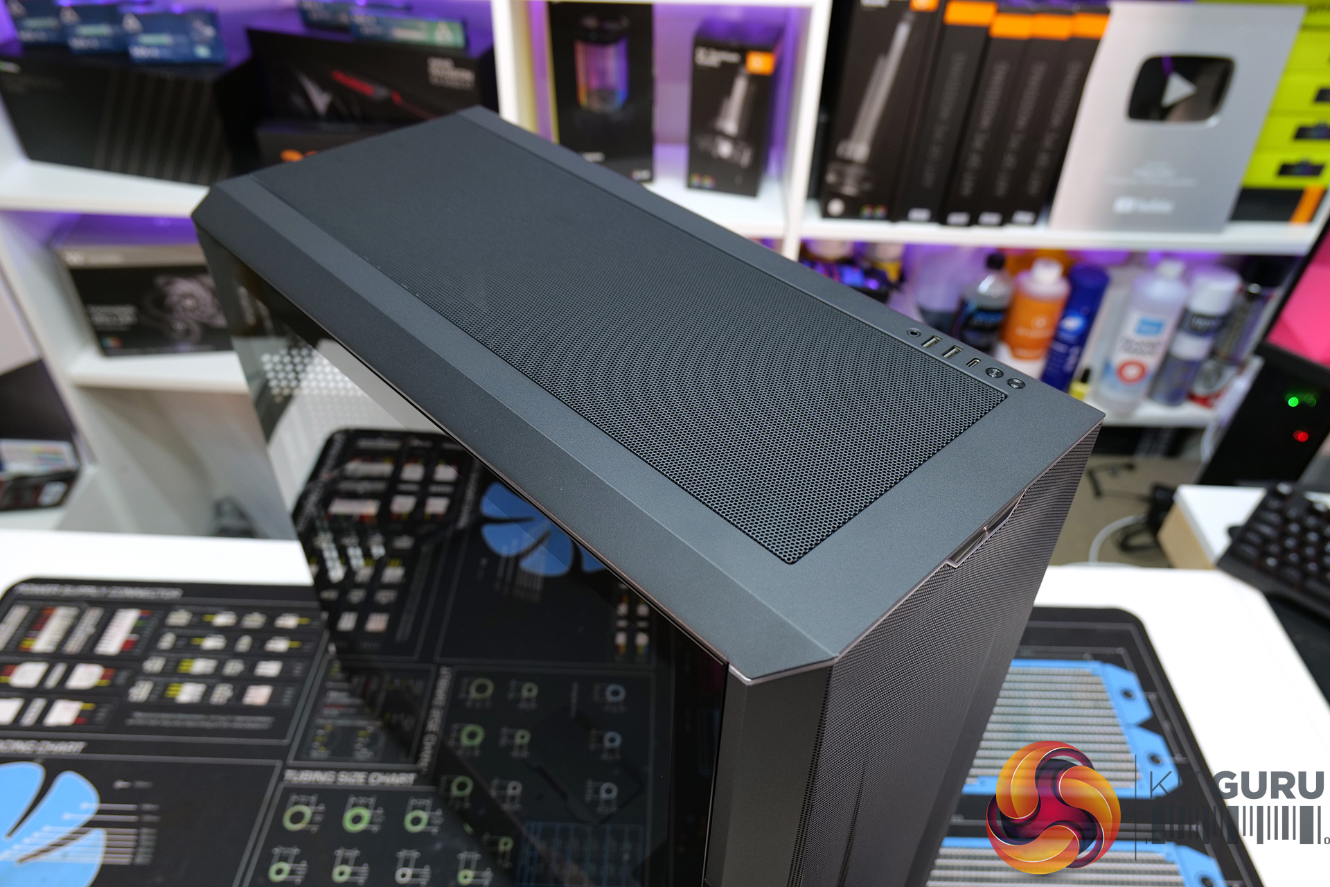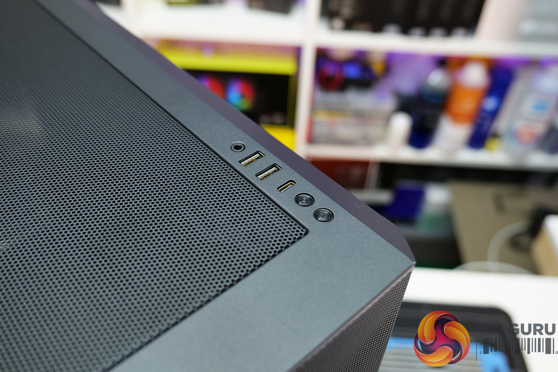 • Front I/O includes 2 x USB 3.0 Type-A ports, 1 x USB 3.2 Gen2 Type-C port, a single 3.5mm headphone/mic jack and two DRGB buttons to adjust lighting mode and colour. The power button is located separately at the top of the front panel.