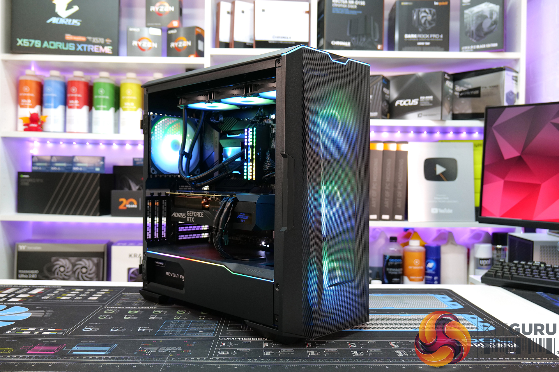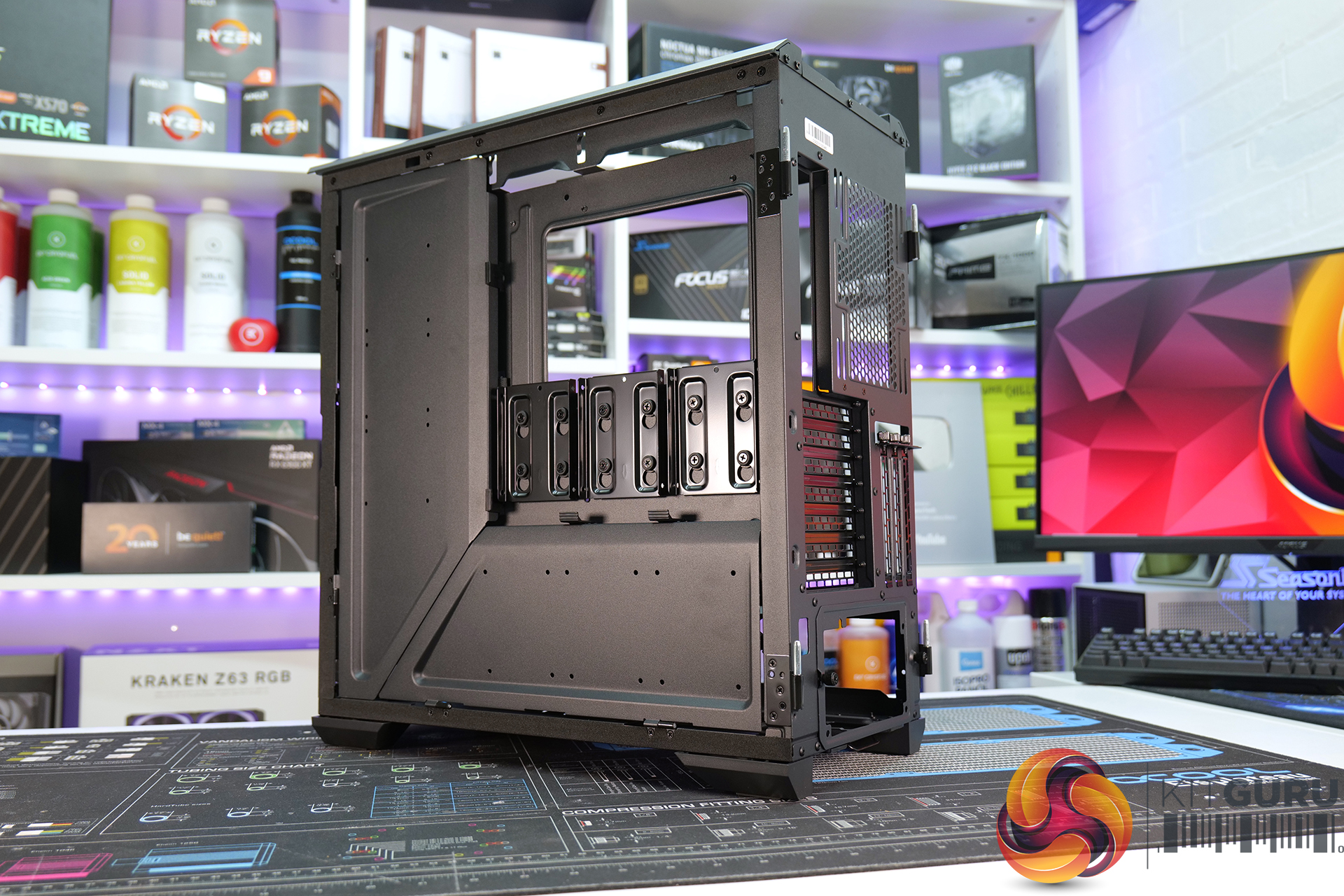 Thermal performance is measured with the case in various configurations, such as the default, with the tempered glass left-hand side panel removed and with the front panel removed to see how these configurations affect the CPU and GPU temperature. During testing, only stock case fans are used unless otherwise specified. All water pumps are set to maximum RPM and fans are set to a custom RPM curve by the Motherboard software/BIOS.
