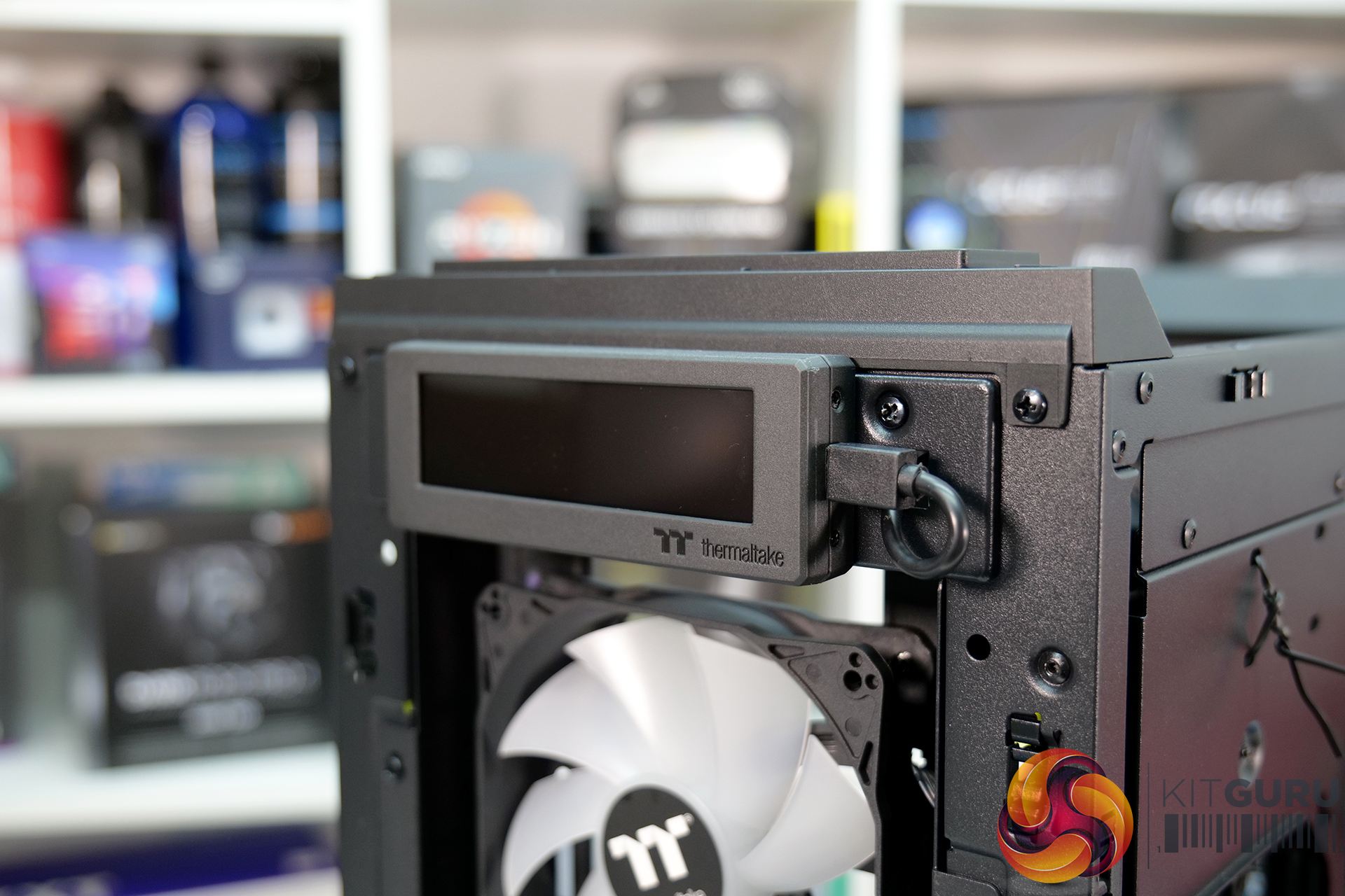 The addition of a 3.9-inch LCD screen on the front panel will no doubt please some users. For those that place the PC on their desk, the LCD panel should be in perfect view, however, I think Thermaltake missed a trick with the LCD display. It would have been even more useful if the position of the display could have been moved around the case to suit the user, maybe having the option to swap the position of the LCD and the front panel I/O could be good for users who keep the PC on the floor?