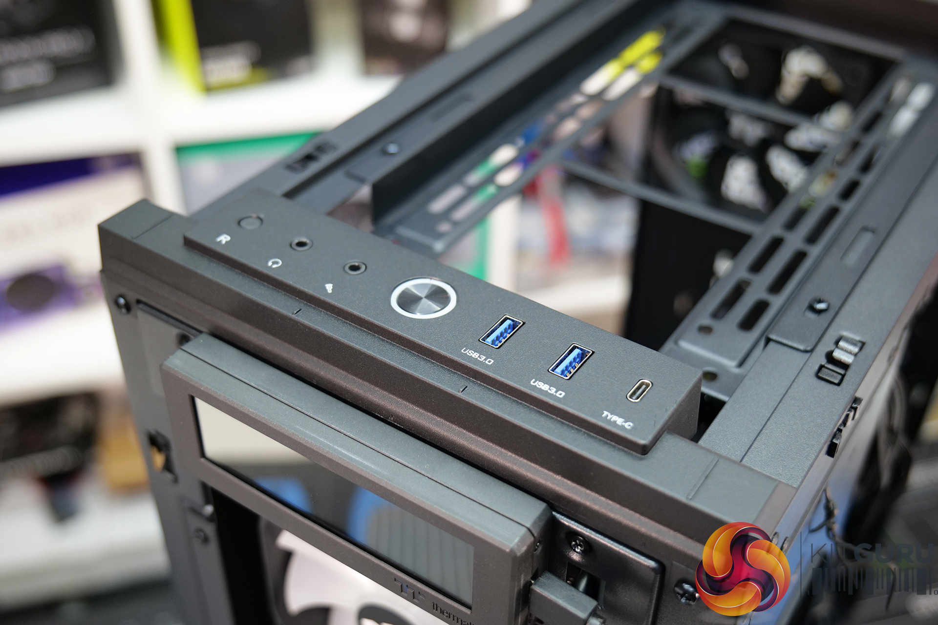 - The Front I/O panel is equipped with power and reset buttons, as well as connectivity via two USB 3.0 Type-A ports, a single USB 3.2 Gen2 Type-C port and individual 3.5mm audio jacks for headphones and mic.