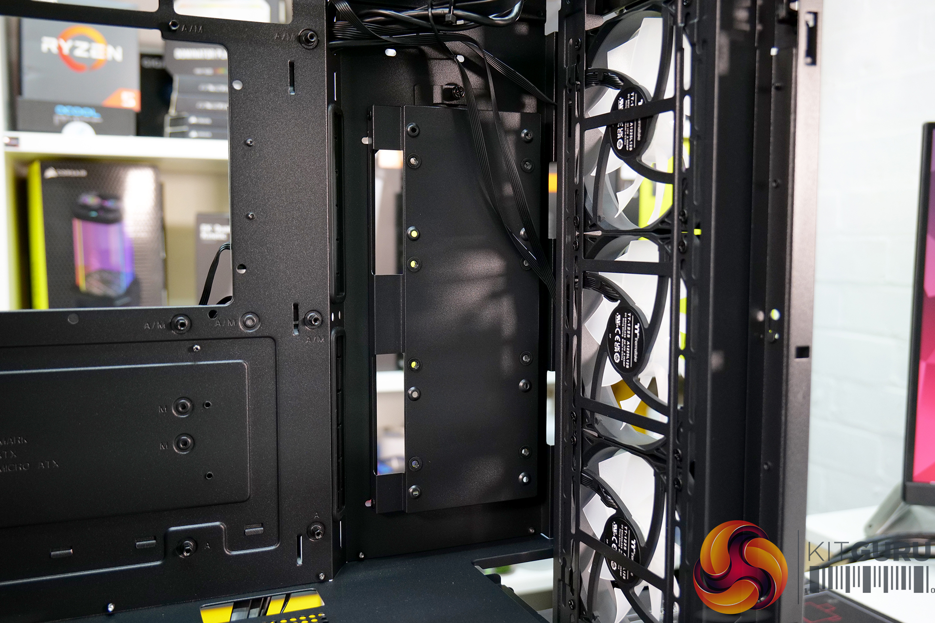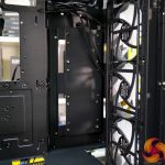 We could have installed the AIO CPU cooler in the side mount position but with the type of cooler used it was difficult with all the tubing coming from the RAM cooler. The user is also restricted to 240mm radiators in this location, and with a long graphics card installed there might be interference between the card and the AIO radiator/fans in this position.