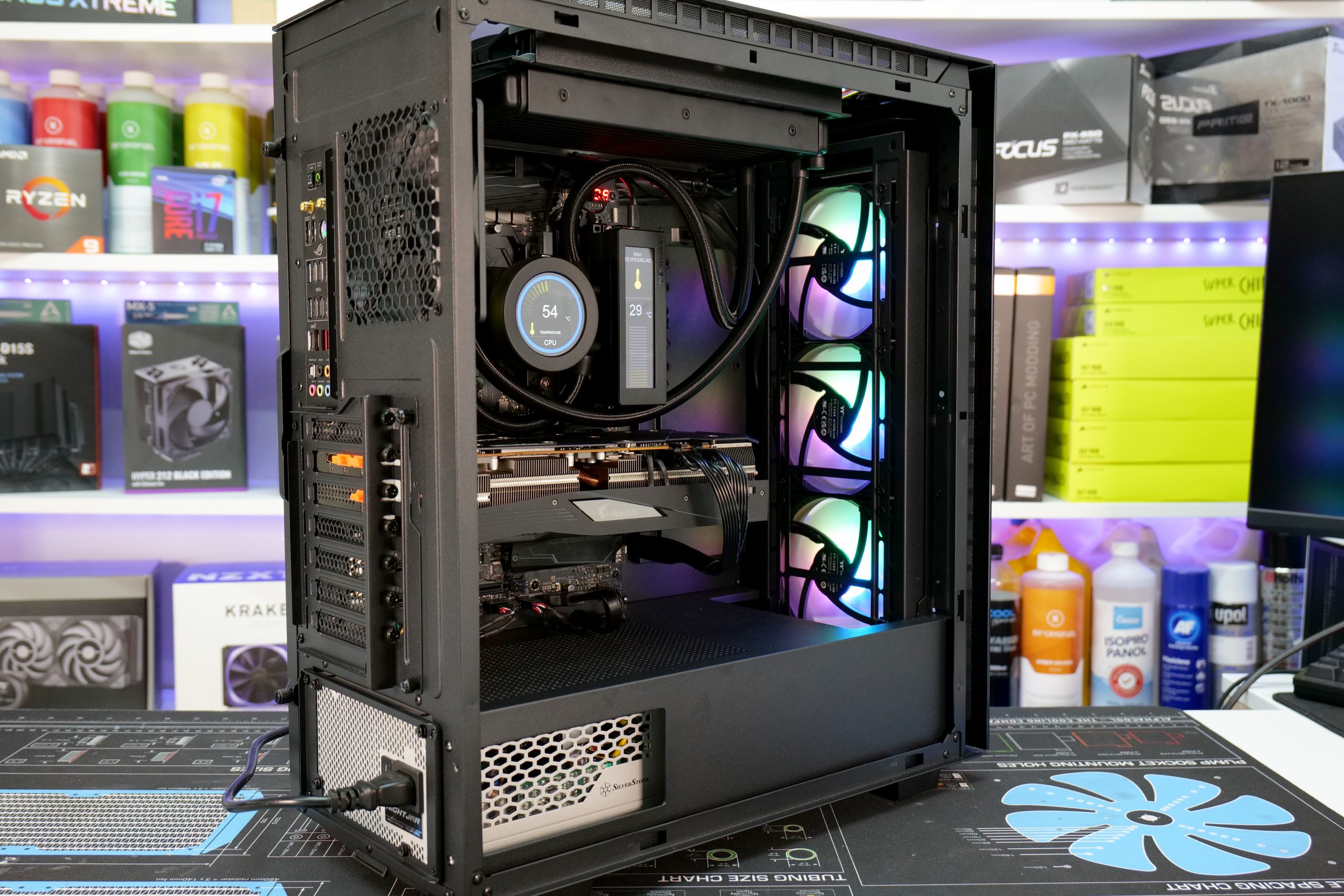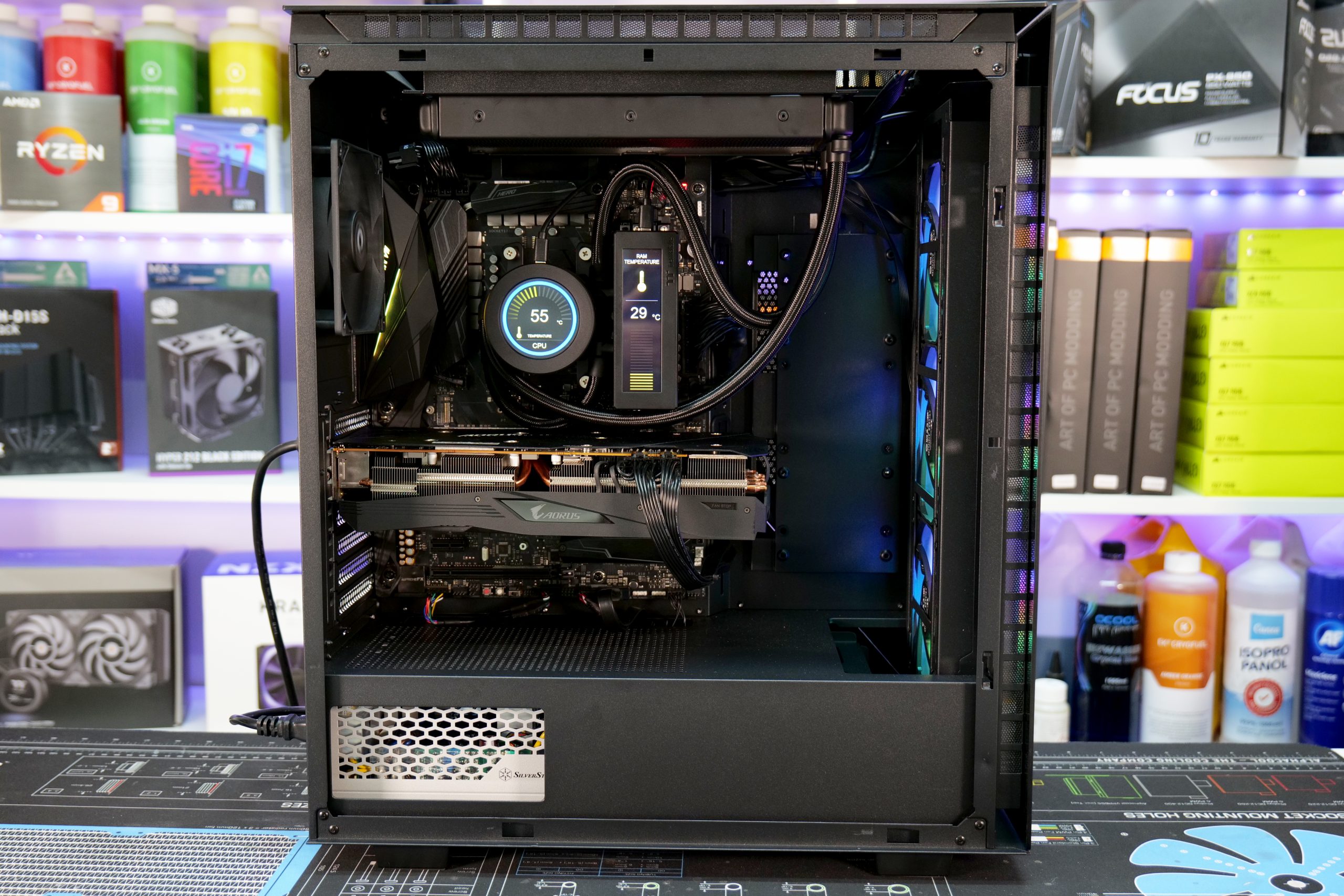 Thermal performance is measured with the case in various configurations, such as the default, with the tempered glass left-hand side panel removed and with the front panel removed to see how these configurations affect the CPU and GPU temperature. During testing, only stock case fans are used unless otherwise specified. All water pumps are set to maximum RPM and fans are set to a custom RPM Curve by the Motherboard software/BIOS.