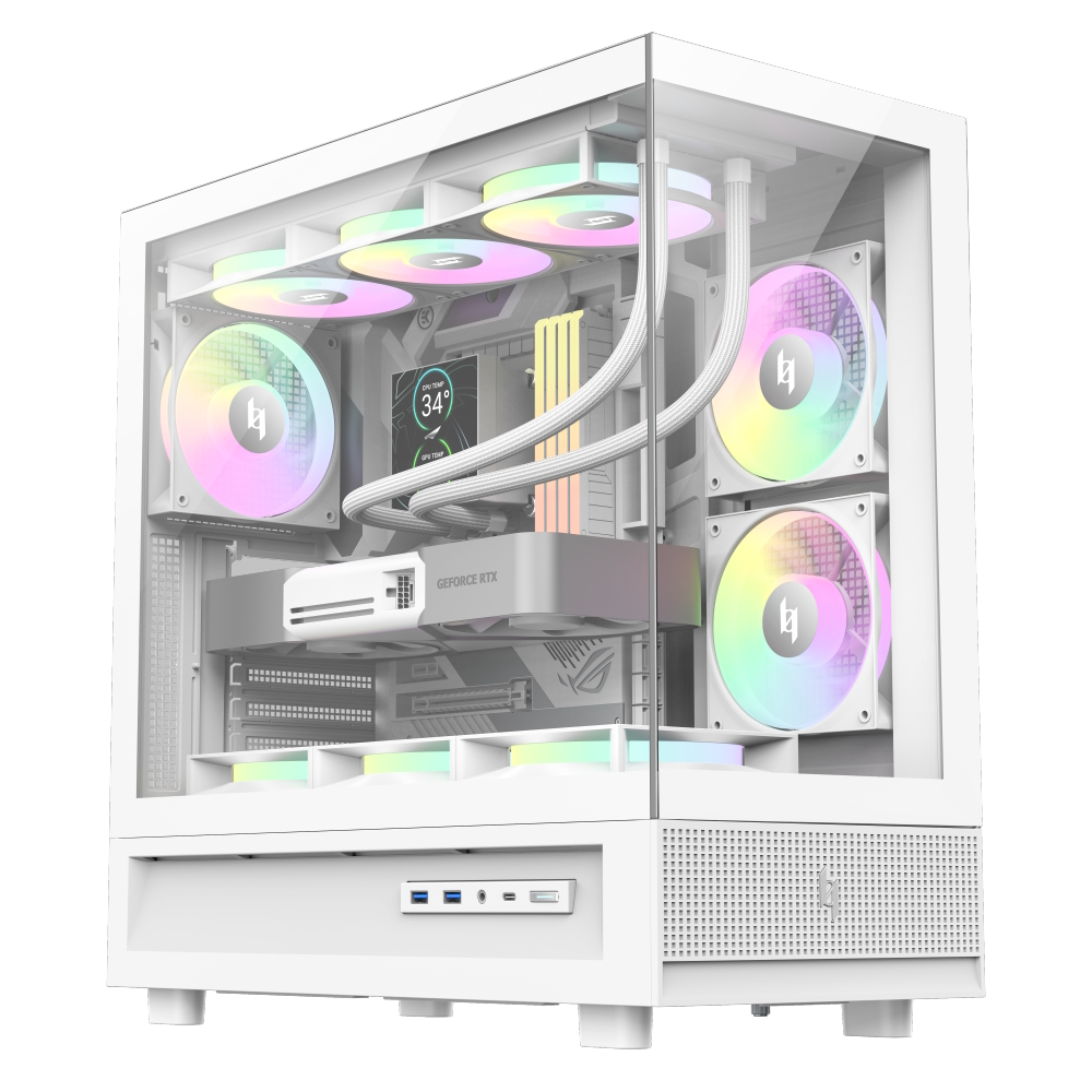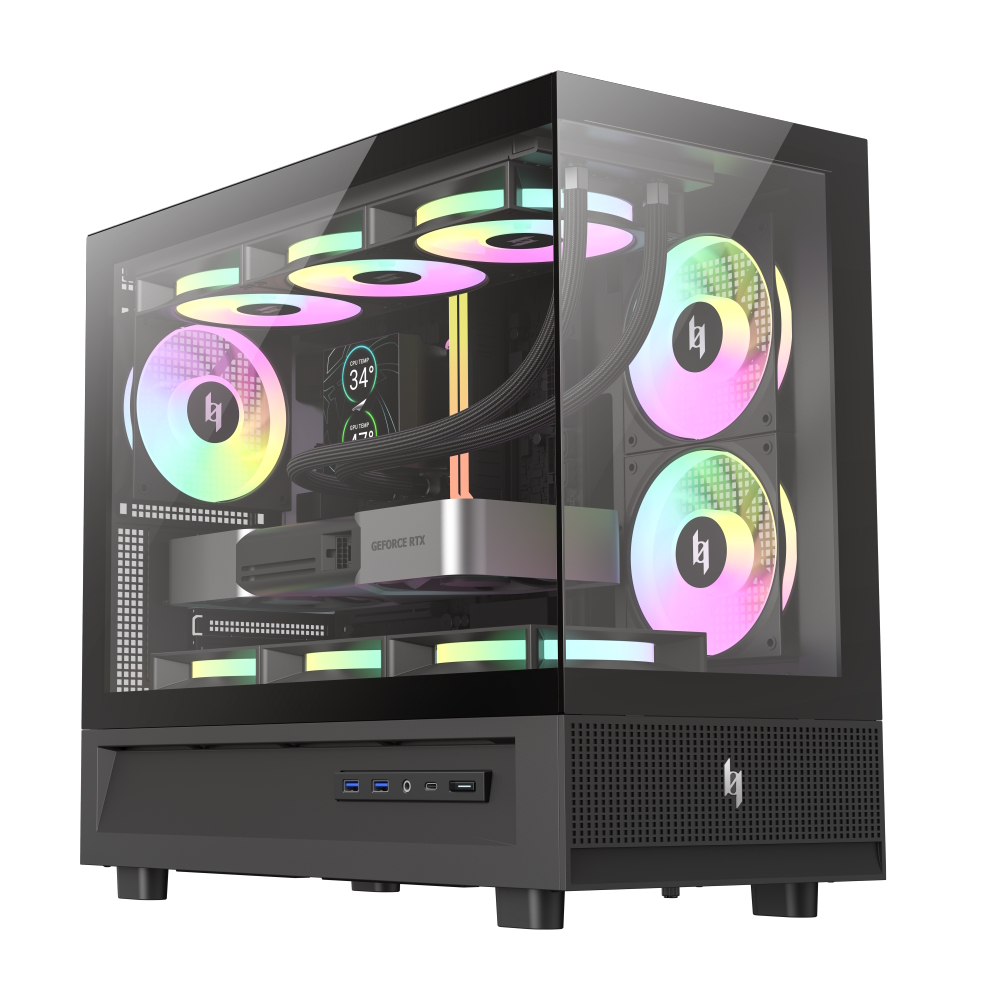 The Nex C51 serves as the full-sized ATX offering, designed for builds that require substantial internal volume. Despite its budget-friendly positioning, it supports flagship hardware, including graphics cards up to 410 mm in length and CPU air coolers up to 180 mm tall. Cooling support is equally robust, with the ability to house a 360 mm radiator on the top panel. Connectivity on the front I/O is surprisingly modern for this price bracket, featuring a 20 Gbps USB Type-C Gen 2×2 port to ensure compatibility with high-speed external storage. Additionally, the case includes three 120 mm ARGB fans, but there's space for a total of nine 120 mm fans.