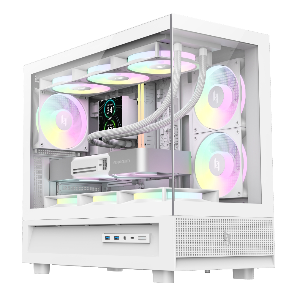 For those looking for a more compact setup, the Nex C31 mirrors its larger sibling's design philosophy in a microATX form factor. It retains the pillar-free glass design and support for 360 mm top radiators, 180 mm tall CPU towers, and 410 mm long GPUs. Like the C51, it comes equipped with three pre-installed 120 mm ARGB fans (supporting up to nine), offering immediate out-of-the-box cooling and lighting without additional purchases.