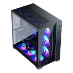 The dual-chamber design allows for the installation of not one but two motherboards – a primary motherboard which can be E-ATX, ATX, Micro-ATX, or Mini-ITX, while the secondary board must be Mini-ITX. The spacious interior allows for an extensive combination of cooling hardware, that alongside the mesh on the top, side, and back of the case, delivers “the next level of cooling for even the most demanding dual system setups”.