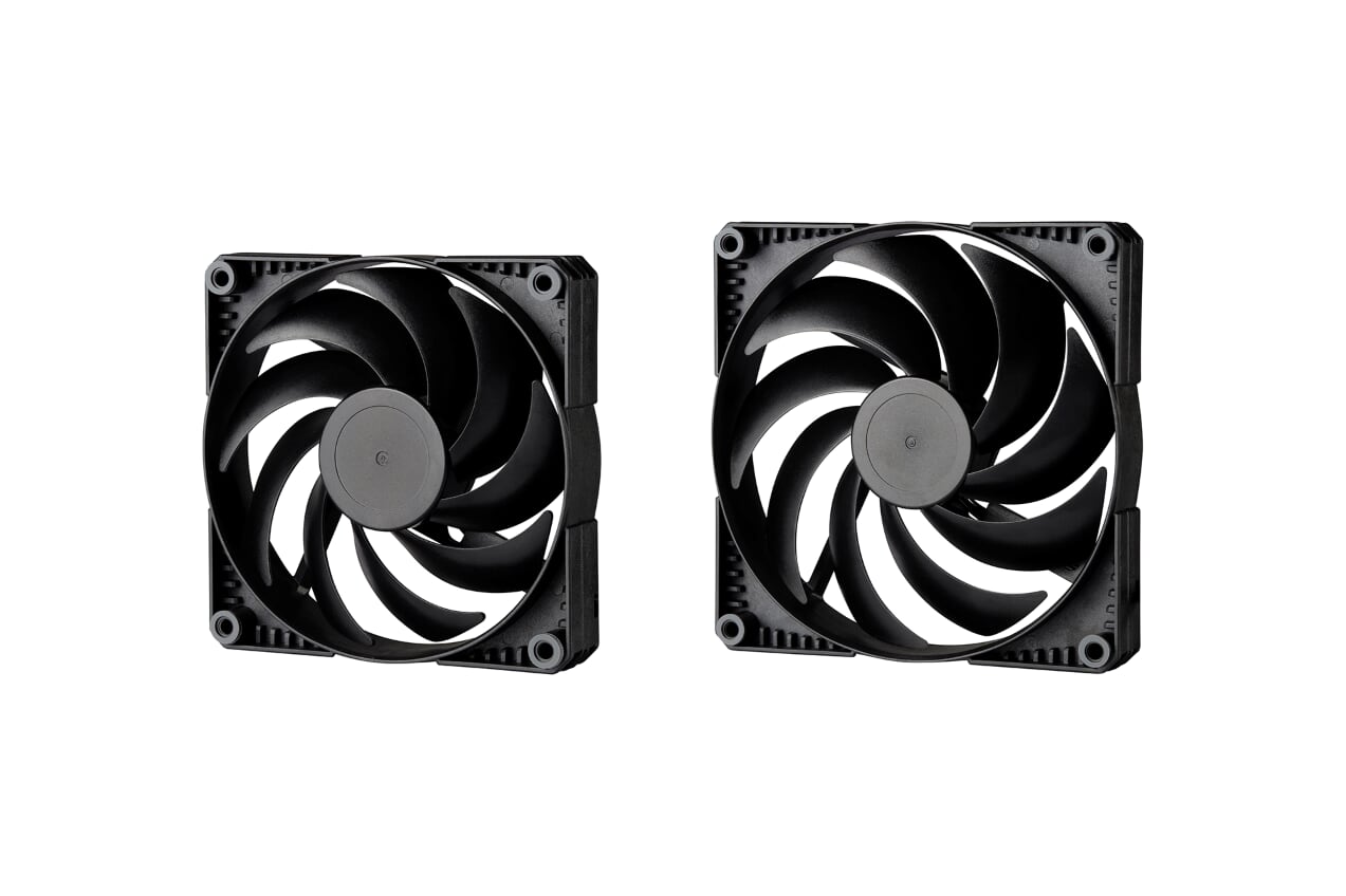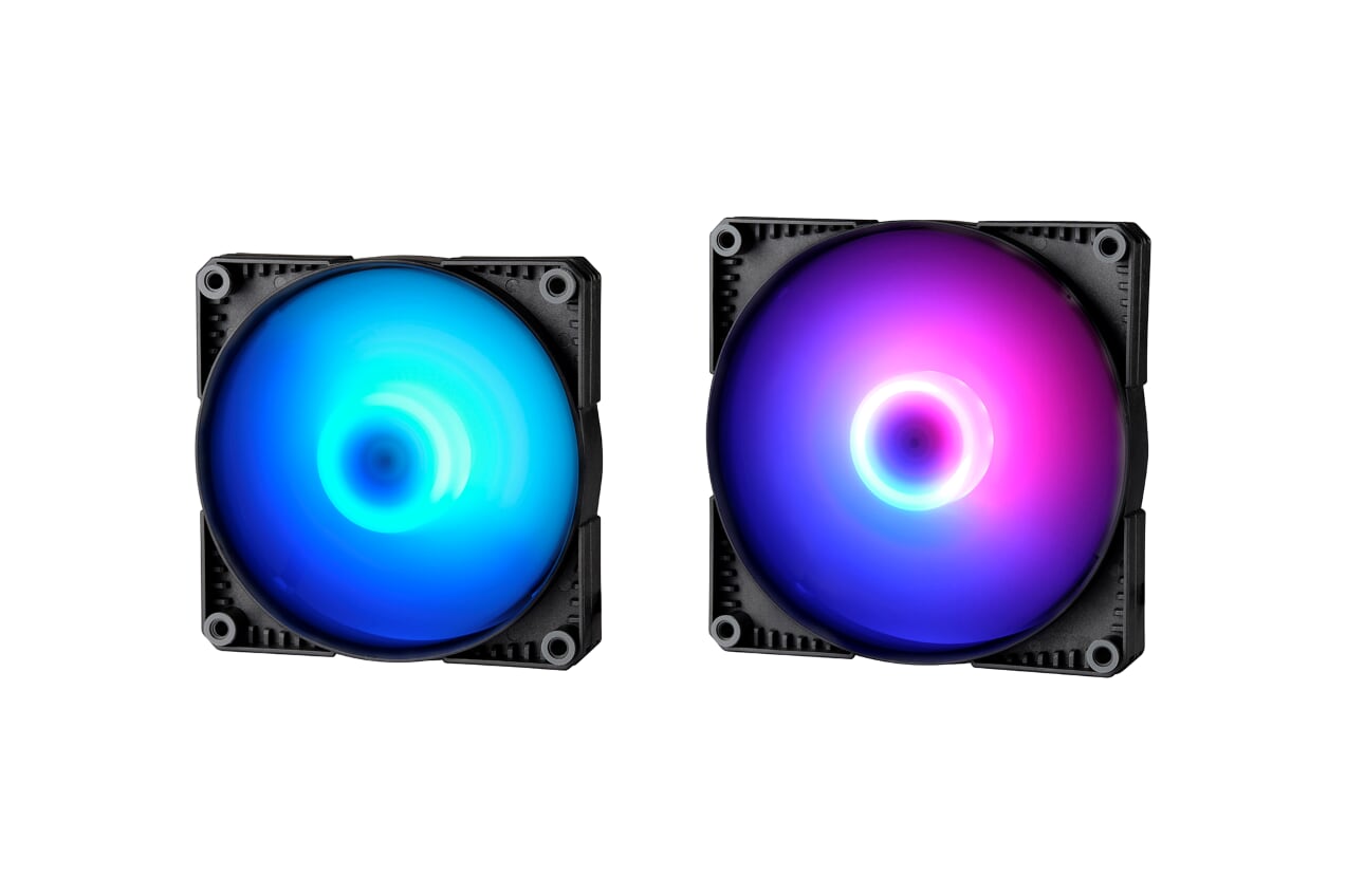 Featuring a 9-blade, rigid frame design, PWM, and rubber dampeners, the SK fans are ideally used as case fans. The use of PWM and the silent sleeve “Rifle Bearing” allows them to “offer high airflow or a quiet cooling solution”. These airflow optimised fans are available as 140mm and 120mm fans, with or without RGB lighting, as a single product and in packs of 3. The D-RGB fan variants are equipped with 12 LEDs integrated into the hub and use translucent blades to provide a “smooth” lighting effect. Additionally, they also come with D-RGB Daisy-Chain connectors that can be connected to a motherboard, controller, or a Phatenks compatible case.