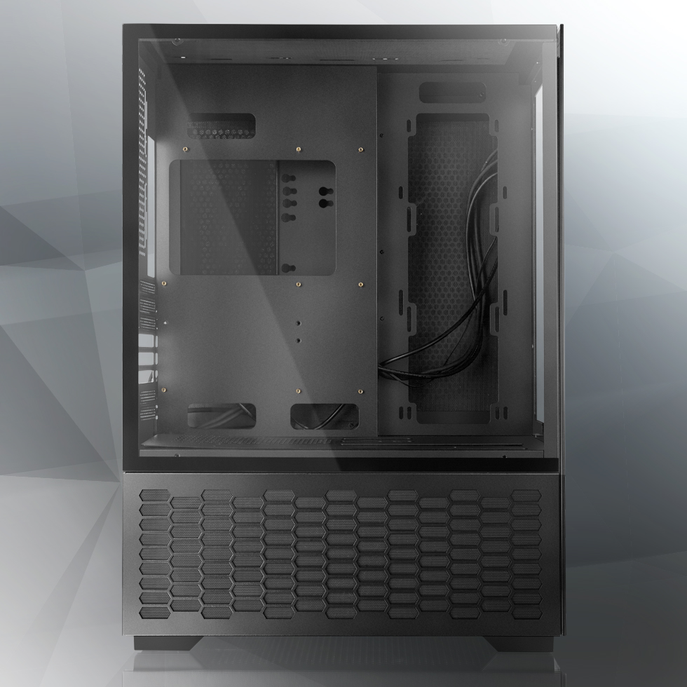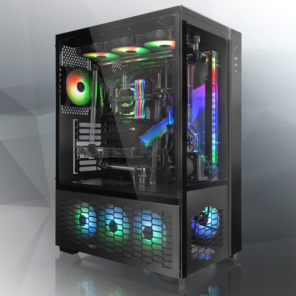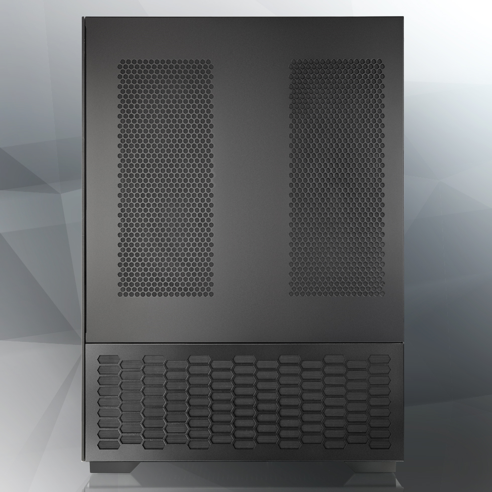 The extensive cooling support allows you to install up to 13x fans: a 120/140mm fan at the rear, 6x 120mm fans at the bottom, 3x 120mm fans at the front, and 3x 120mm fans on the top. Radiator support allows you to install up to 2x 280/360mm radiators on the bottom, and a 280/360mm radiator on the top. You can also mount a 360 distro plate at the front and a D5 pump/reservoir on the pump mounting holes.
