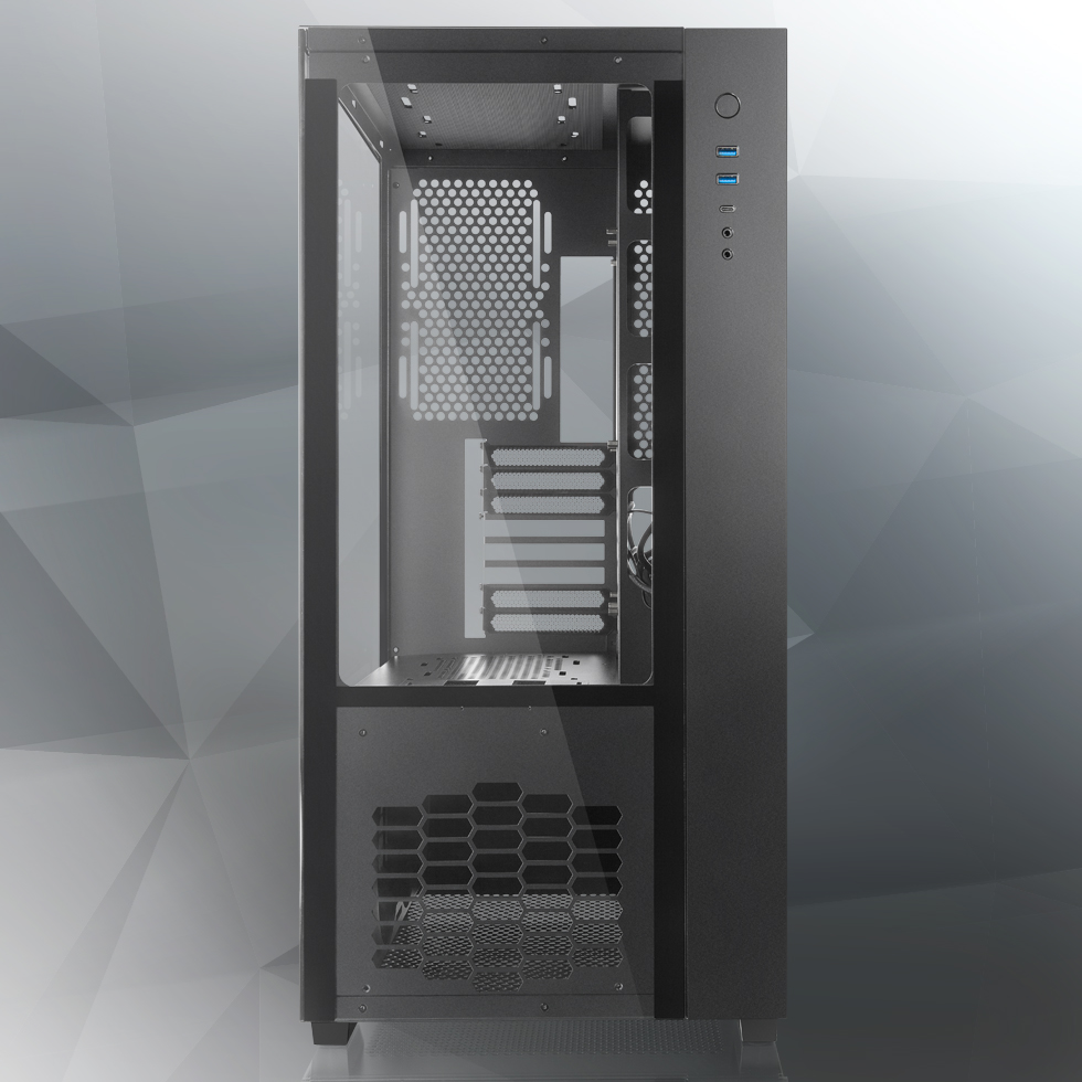 The Raijintek Paean Premium ATX chassis supports ATX power supplies and ATX, mATX, and mini-ITX motherboards. There are 8x PCIe expansion slots and storage slots for 2x 2.5/3.5-inch drives. Additionally, it can house up to 430mm long graphics cards and up to 170mm tall CPU coolers. The front I/O panel has 2x USB 3.0 ports, a USB-C port, an audio-out 3.5mm jack, and an audio-in 3.5mm jack.