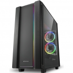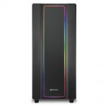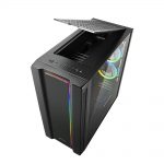 The front panel has a carbon fibre look and an RGB lighting around the central plate, lending a “colourful touch to the front of the case”. The tempered glass panel on the right side is attached through screw fittings on the back, avoiding the use of screws on the glass itself. The two ARGB fans mounted on the rear of the case can be connected to the included RGB controller. Additionally, you can synchronise the ARGB fans through most motherboards' RGB software. If your motherboard isn”t compatible, you can use one of the 14 lighting modes that the included RGB controller offers.