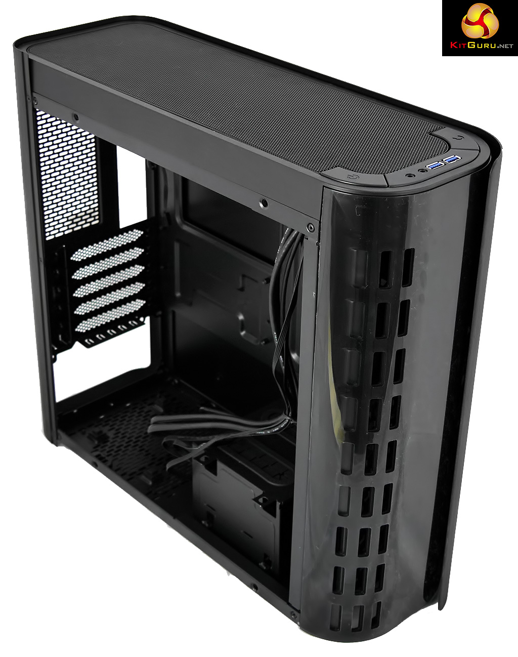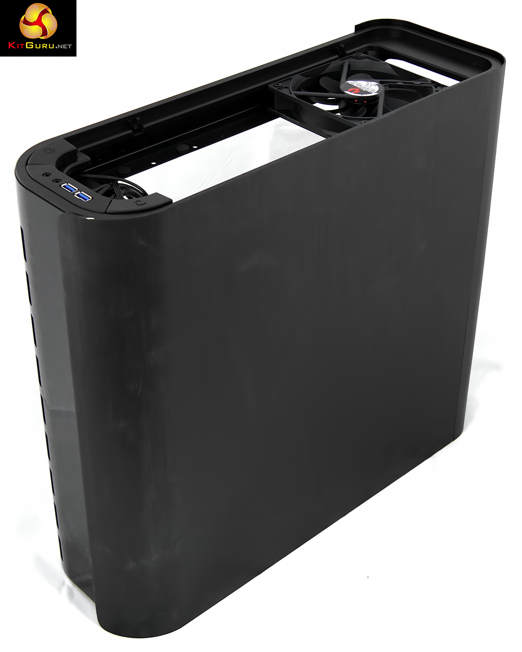 BitFenix has clearly worked hard to keep the Pandora small so there is no optical drive bay and the swoopy aluminium side panels curve round at the front to make the case look even thinner. It is notable that the Pandora has curves on every surface.