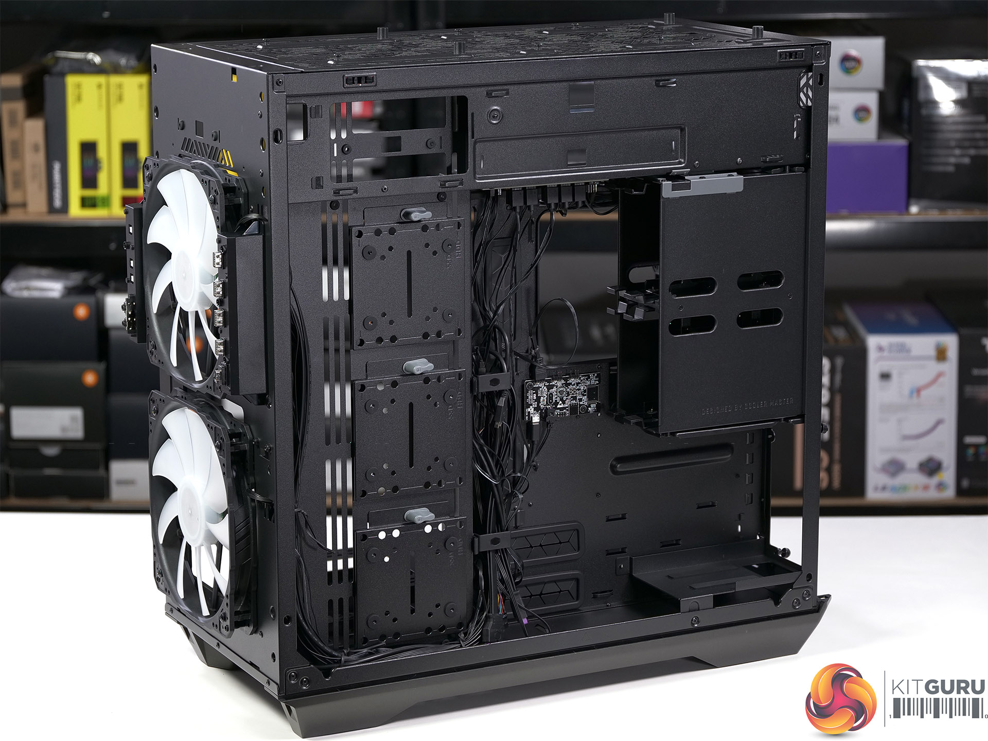 The stand-out feature of the Cooler Master HAF 700 is the pair of 200mm fans at the front of the case but perhaps the most noteworthy point is the pair of 120mm fans at the rear as that is truly unusual. The five supplied fans are connected to a PWM/ARGB control hub that helps you get the most from the cooling and attendant light show.