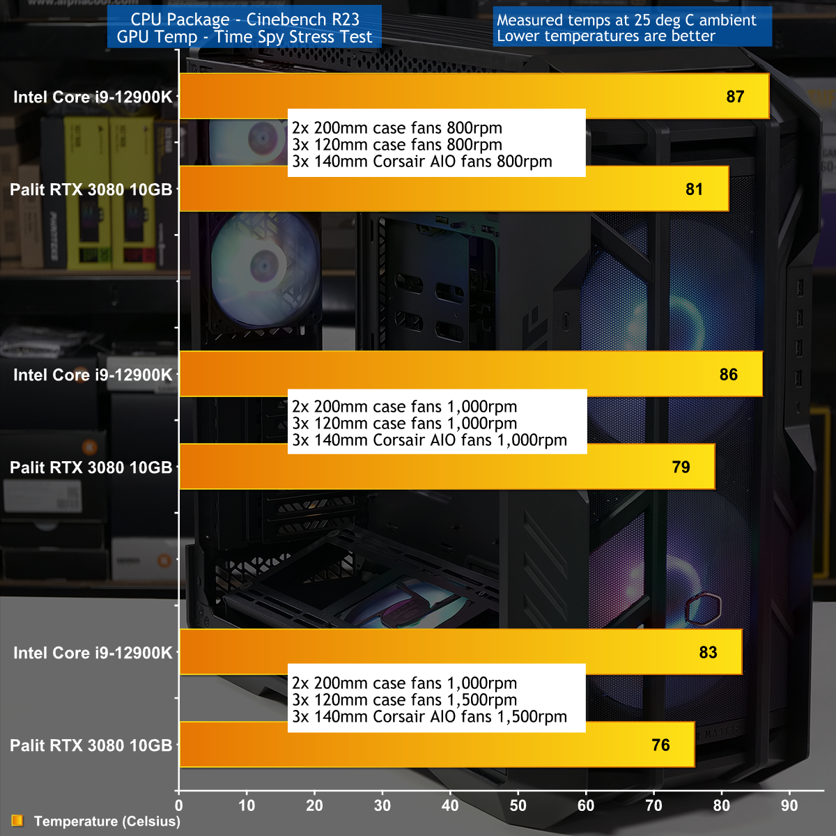 To put this case through its cooling paces we will be using a test system consisting of an Intel Core i9-12900K, RTX 3080 and an SSD. This system allows us to produce a substantial amount of heat and effectively test the Cooler Master HAF 700‘s cooling capabilities.
